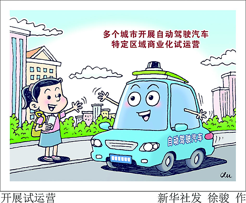 ▲全国已有多个城市允许自动驾驶汽车在特定区域、特定时段进行商业化试运营。据新华社