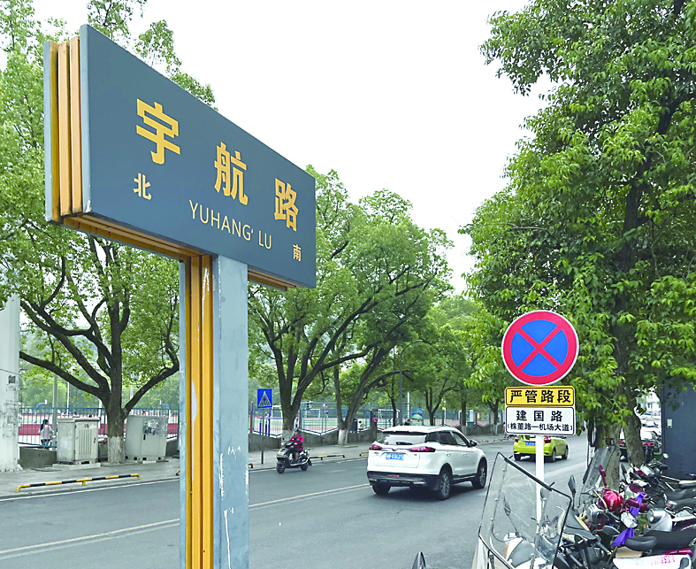 ◀路牌已更名为“宇航路”。 记者/刘平 摄