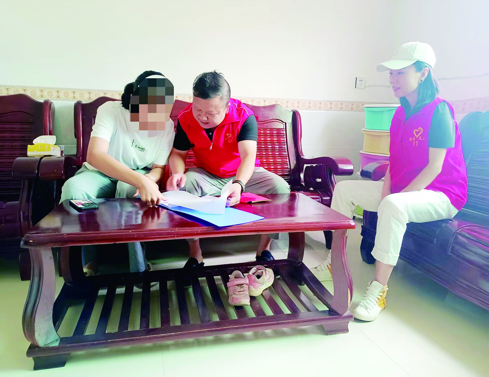 ▲攸县义工联合会志愿者与贫困学子核对信息。受访者供图