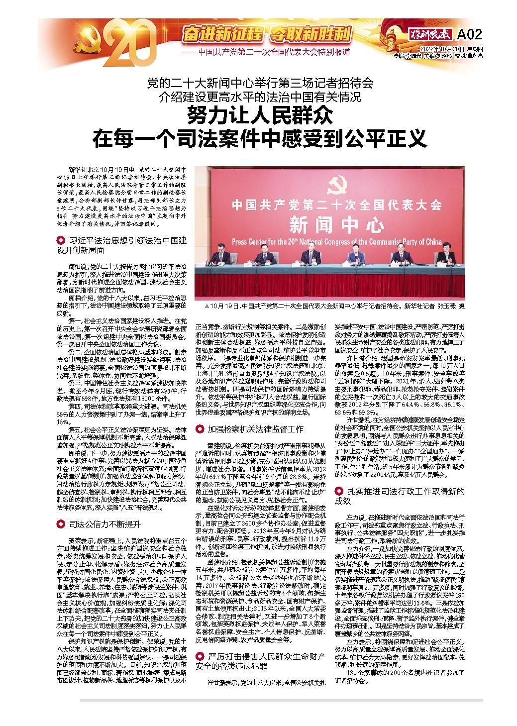 努力让人民群众 在每一个司法案件中感受到公平正义