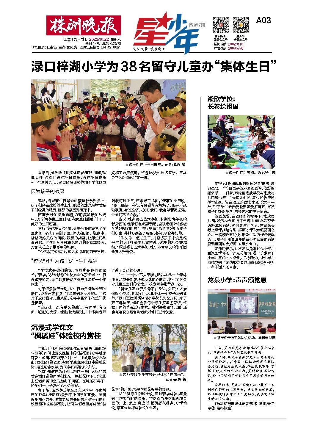 渌口梓湖小学为38名留守儿童办“集体生日”