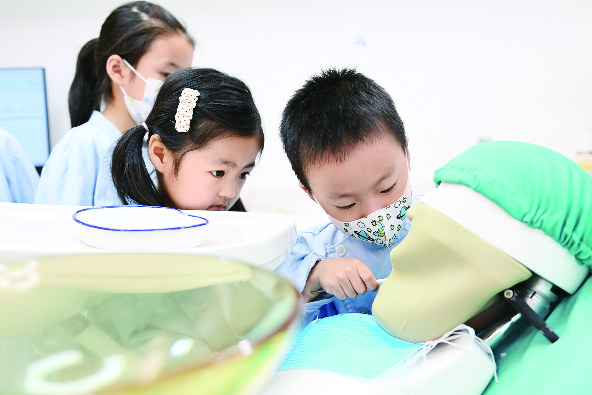 ▲10月2日,小朋友在杭州青少年发展中心“Do都城”体验“牙科医生”。
