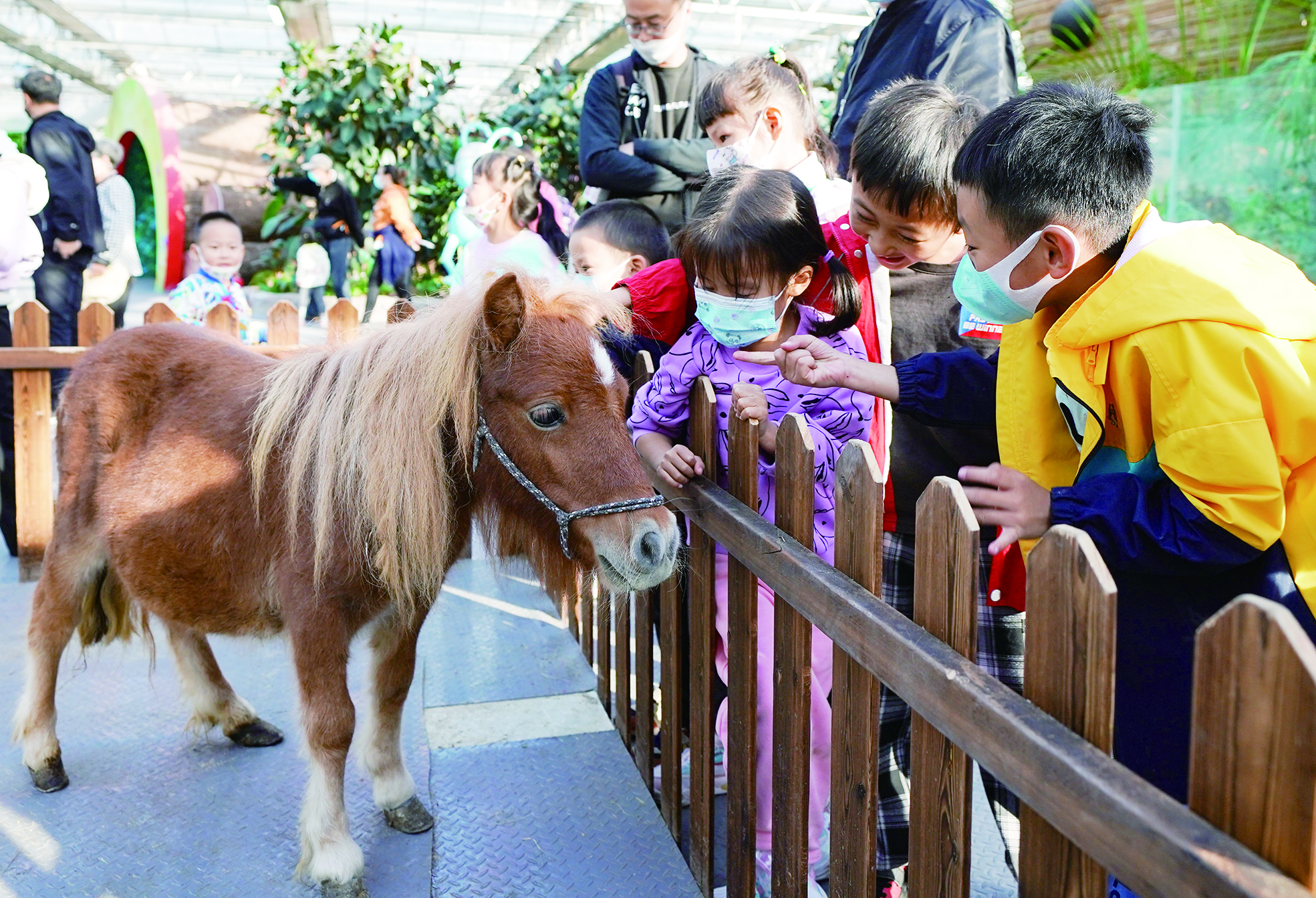 ▲10月4日,小朋友们在北京农业嘉年华园区里观赏果下马。