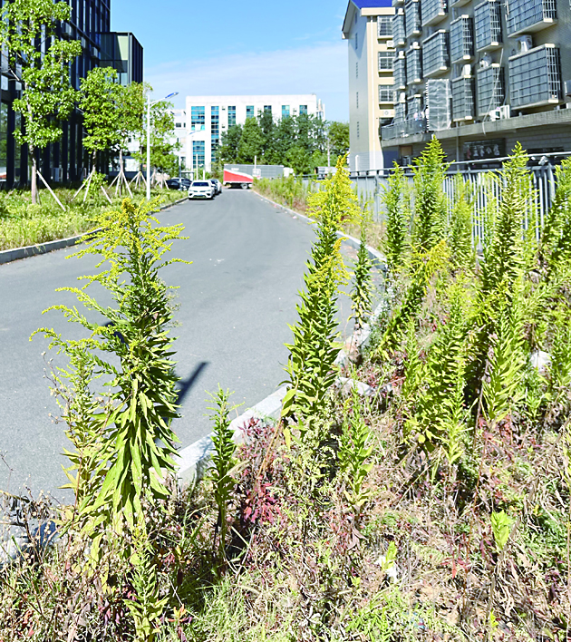 “绿化带内长满了‘一枝黄花’!”10月10日,荷塘区宋家桥街道天台村天台小区居民反映,位于金山工业园的春华路边及株洲莞深智造技术装备商贸城,有部分绿化带长满“一枝黄花”。