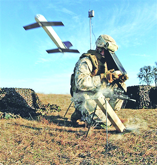 ▲美军士兵发射“弹簧刀”无人机。 (网络供图)