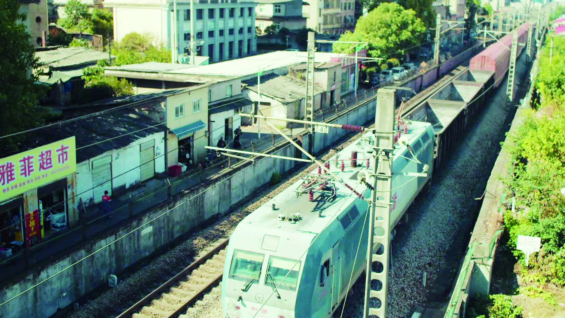 秋日的龙泉路,阳光洒满了大地和周围的建筑,街边的大树依然翠绿,但一阵秋风吹过,树叶零零散散飘落下来。结伴而行的路人谈论着天气变化、生活琐事;讨生活的人骑着三轮车、摩托车匆匆而过;巷口卖红薯的大叔为顾客挑选红薯,还提醒小心烫手;人行天桥下,和谐号列车驶过。无人留意的角落,都是生活的痕迹。