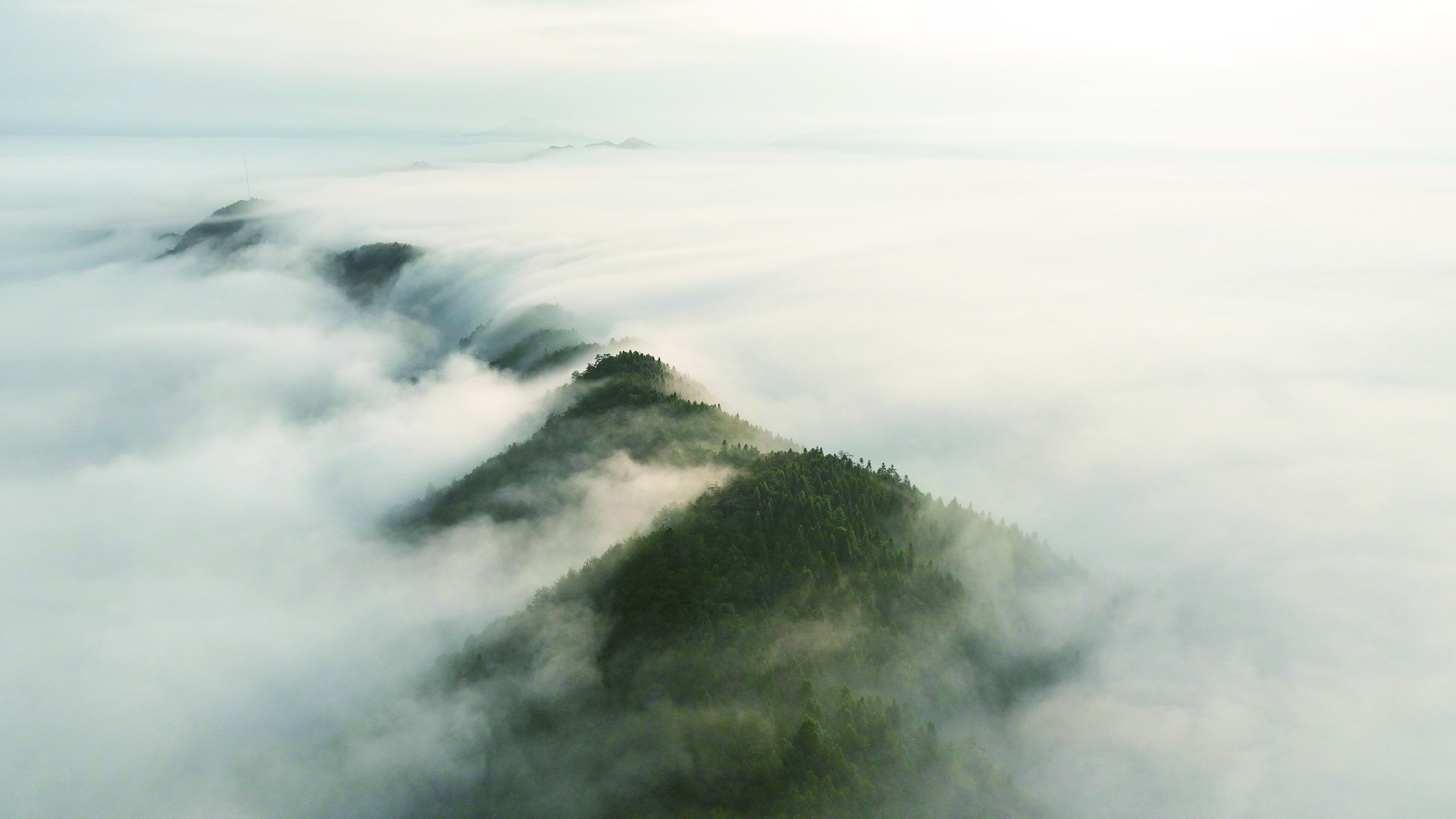 瀑布云是当天早上7时左右逐渐形成的,其轻薄如白纱的云雾,卷起又舒展,大片云雾聚集在山间,沿着山岭向下翻腾,化作一道宽广的瀑布倾落而下,跌宕起伏,似大江奔涌,延绵不绝,绮丽壮观,瞬间把云上大院纳入自己的怀抱。眺望远处山峰,若隐若现,姿态万千,仙气十足。两个多小时后,云逐渐散去。