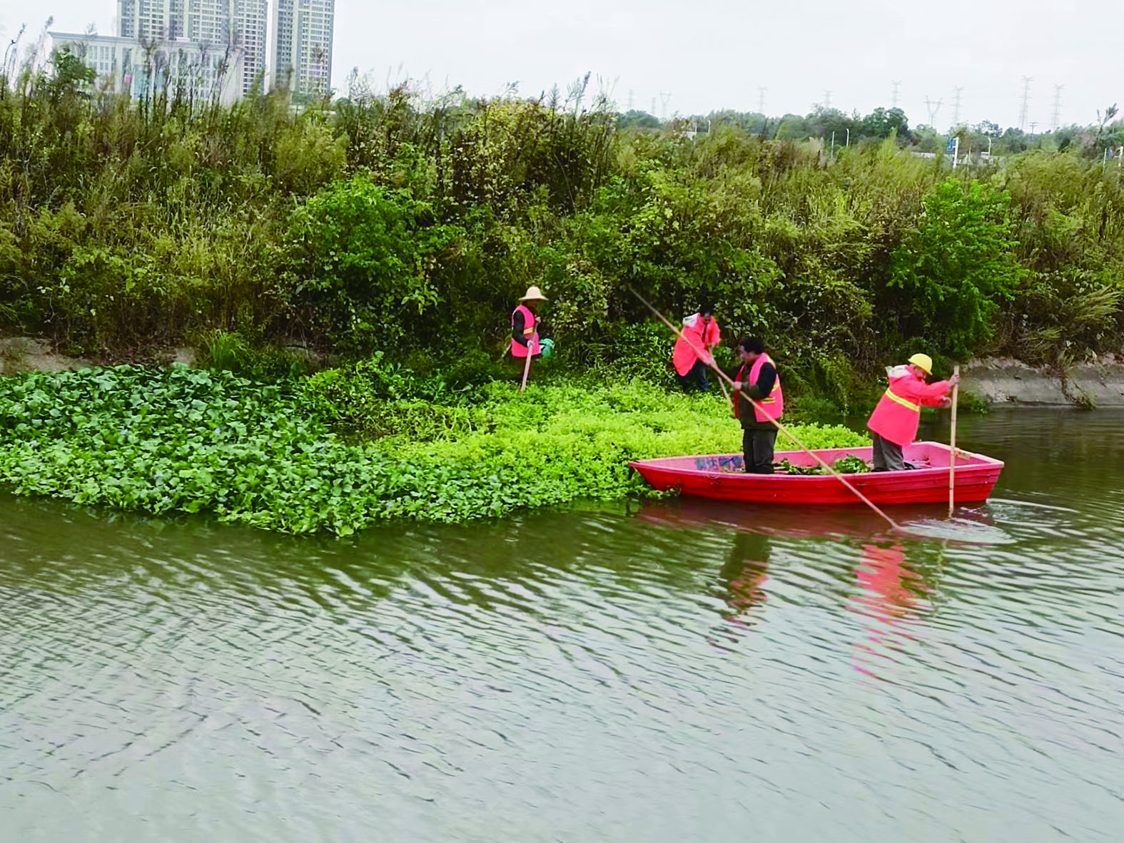 在龙母河龙头铺街道段,街道办组织各社区志愿者和保洁员,出动船只5艘,清理河段5000余米,打捞水葫芦15余吨,有效遏制了水葫芦的生长蔓延。