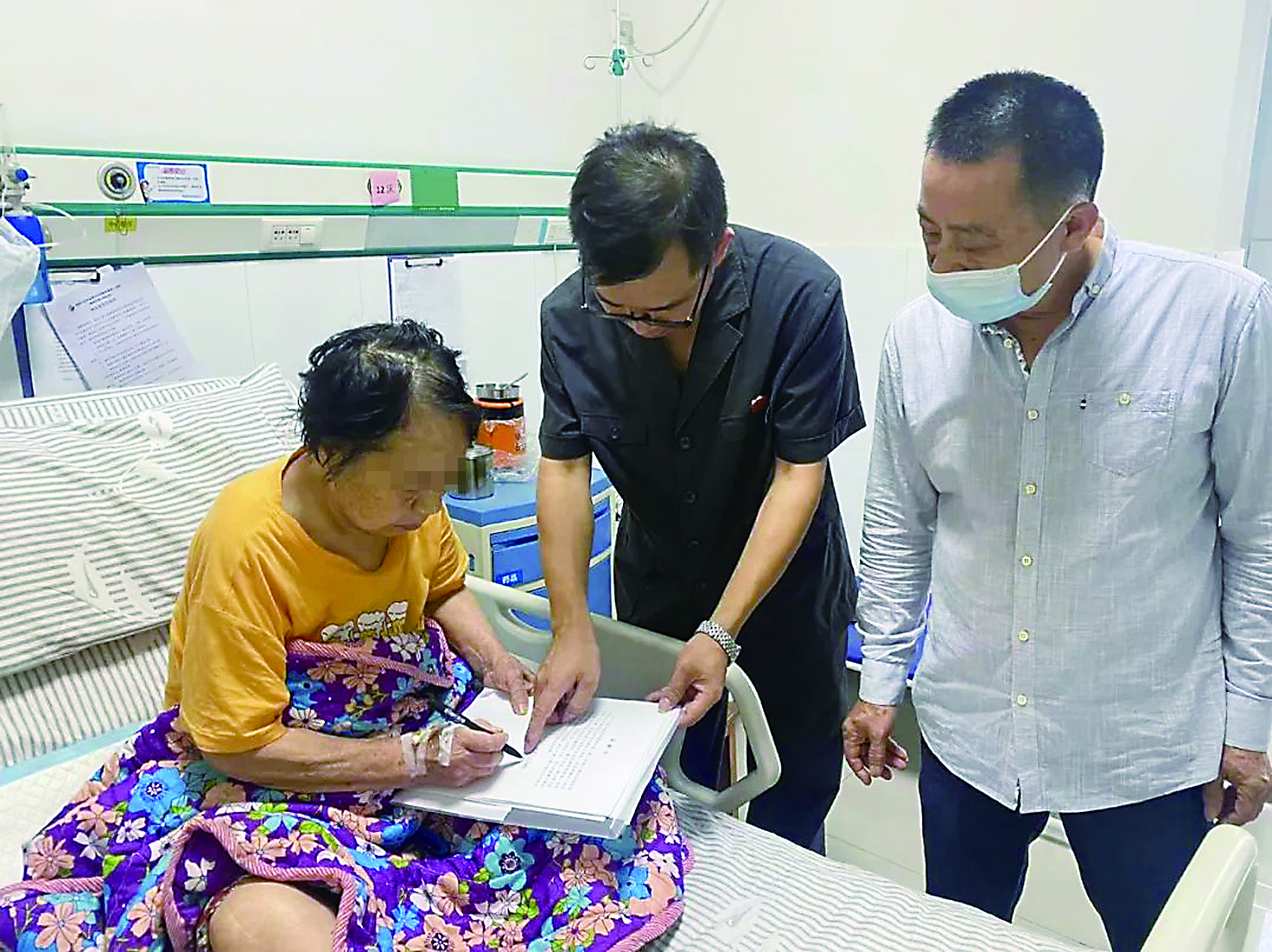 ◀文娭毑在医院签署相关文件。 通讯员供图