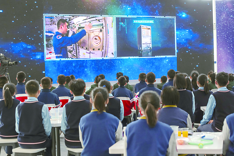 这是中国航天员首次在问天实验舱内进行授课。