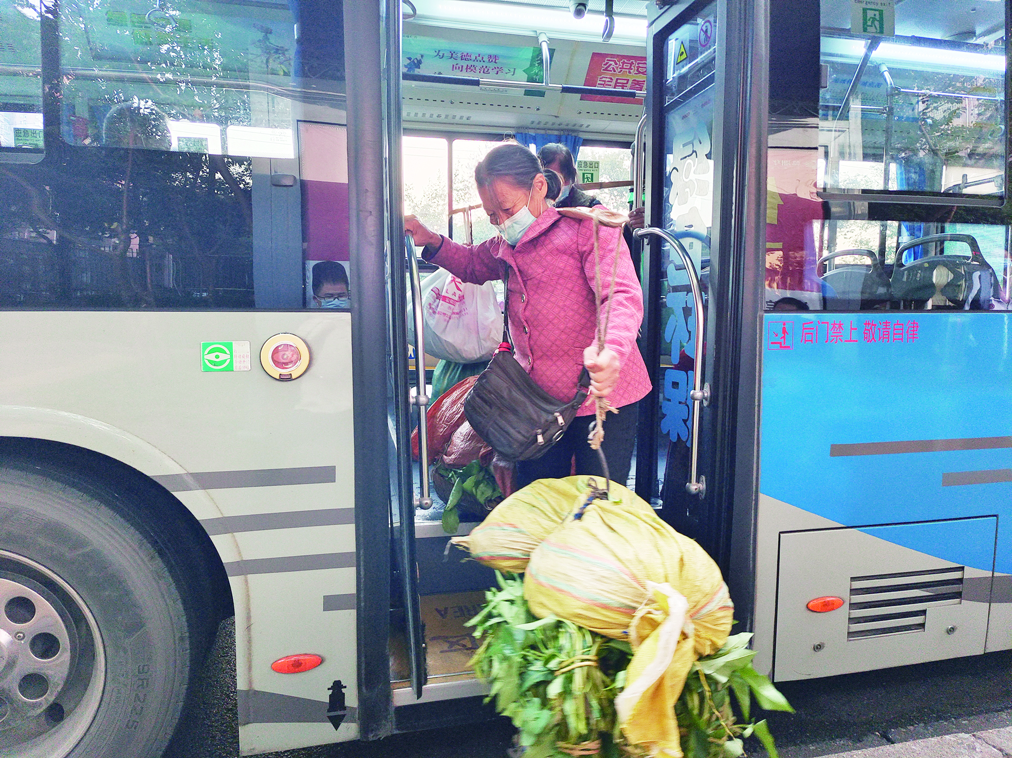“挑一担菜上车,你们各种帮忙,送到市场边上,‘货票’也就5块钱。卖完菜回家,坐车还不要钱,非常好了。”苍霞村的菜农潘大妈说。