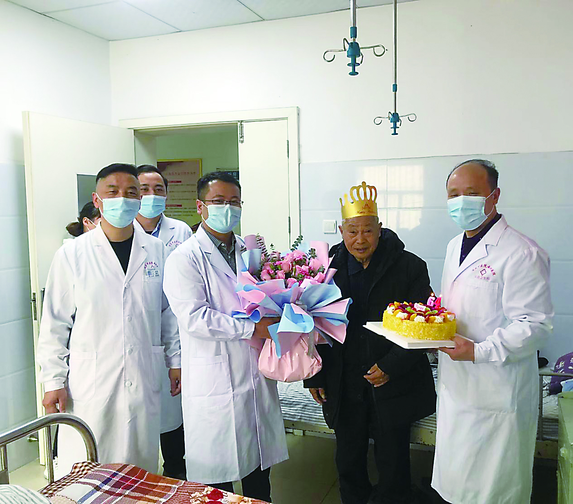 “感谢卫生院给我送来鲜花和蛋糕,让我感受到了家的温暖。”刘爷爷拉着医生的手开心地说。