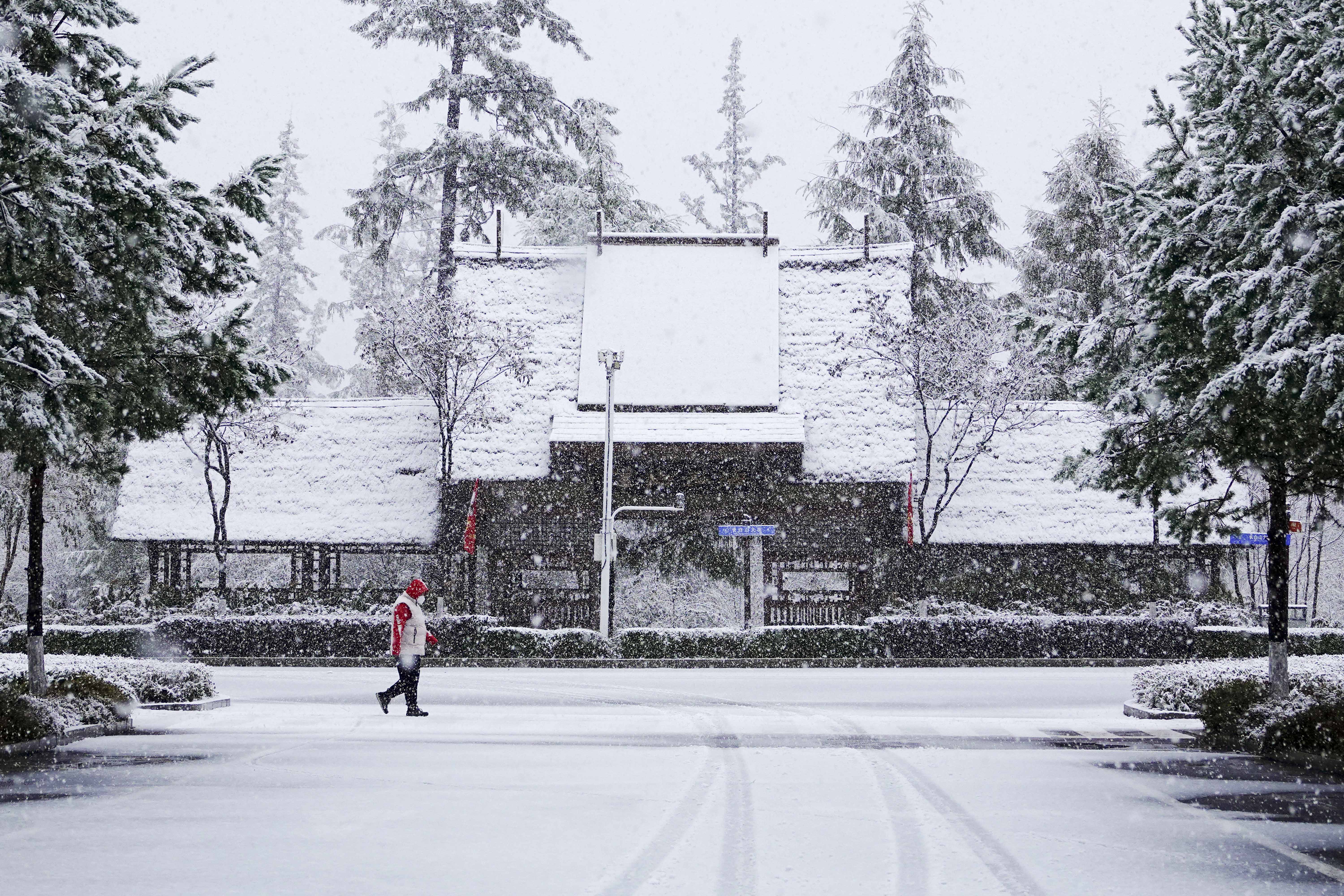 ▲10月10日,在吉林省延边朝鲜族自治州安图县二道白河镇,居民冒雪出行。据新华社