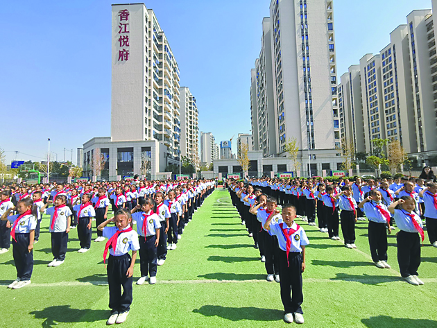 10月13日是中国少年先锋队建队73周年,株洲经开区云龙香江学校283名同学光荣地加入中国少年先锋队。