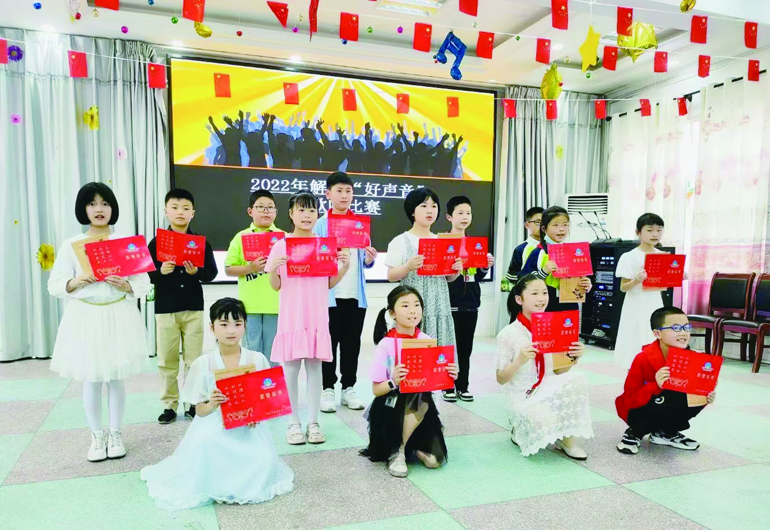 从2020年开始,学校不定期举行红歌合唱大赛,通过唱红歌的活动形式将红色文化渗透在学生心中。2021年,在茶陵县师生艺术节展演中,该校综合节目《我们是共产主义接班人》荣获一等奖。今年5月,学校举行“校园好声音”评选大赛,在校园内掀起红歌热潮。解放学校始终旗帜鲜明地坚持红色课程融合育人,以“双减”教育背景下的课后服务为阵地,开设了多个红色教育主题社团。在学校第12届书香艺术节暨2022年上学期课后服务成果展示上,情景剧《朱德的扁担》《王二小》等革命剧目精彩上演,学生通过人物对话、神态、动作等细节的揣摩,对革命人物的品质有了切身体会。