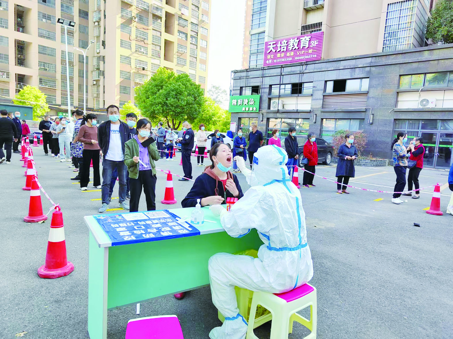 ◀芦淞区核酸检测采样现场。 记者/杨凌凌 摄