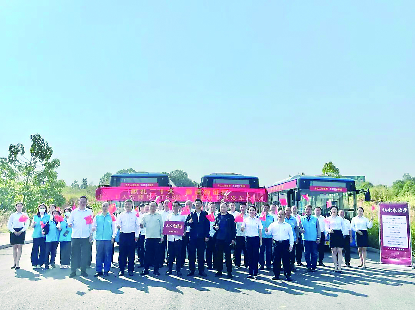 本报讯(株洲晚报融媒体记者/郑炜青 通讯员/彭程) 献礼二十大,奋进新征程。10月17日上午,由株洲市汽博园开往城铁大丰站的T88路志愿服务专线发车仪式在株洲汽博园举行发车仪式。