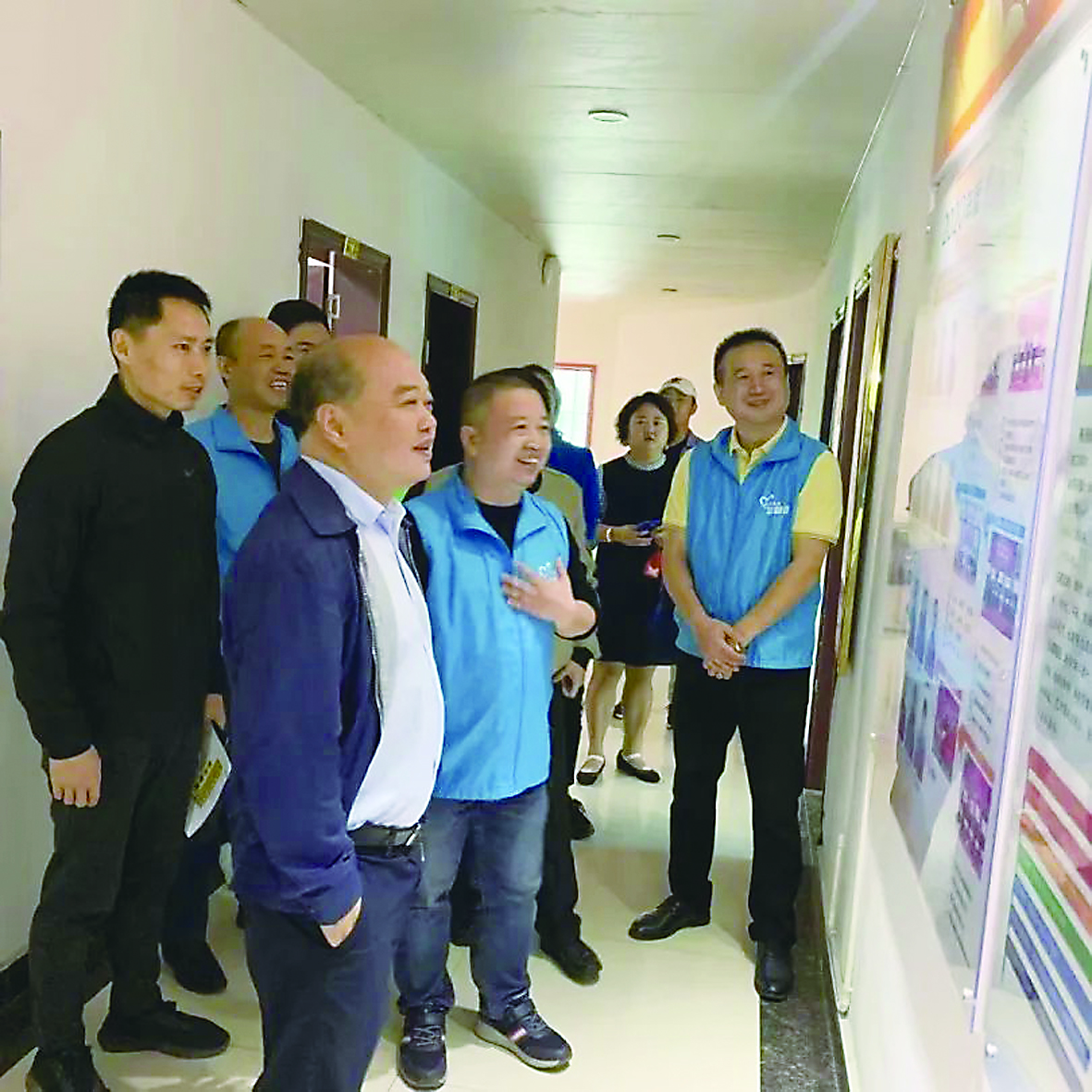 ◀丁奇志副部长(前排一)一行视察晚报志愿者联合会。 (通讯员/张莉 摄)
