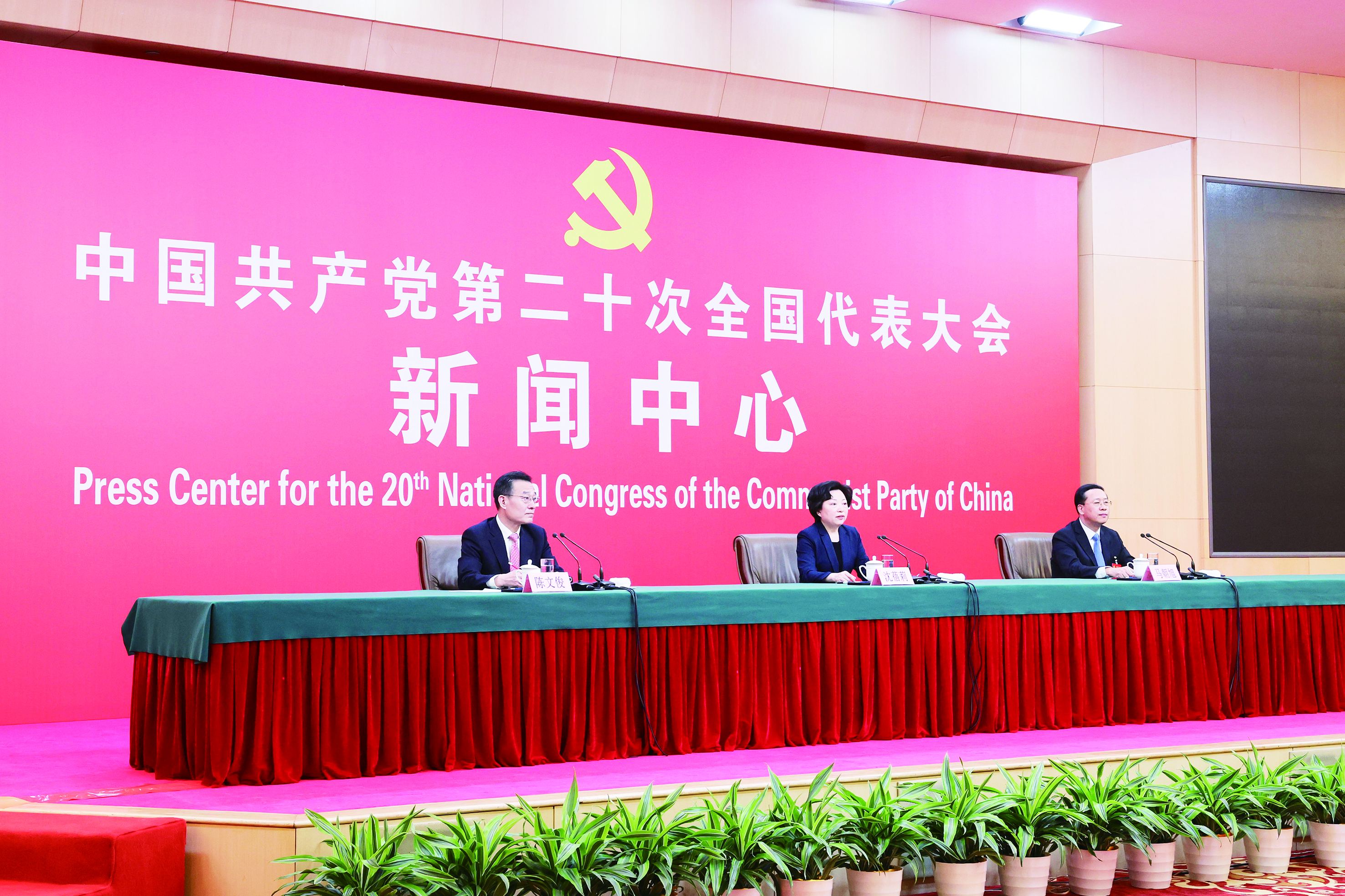 ▲10月20日,中国共产党第二十次全国代表大会新闻中心举行记者招待会。中央对外联络部副部长沈蓓莉,外交部党委委员、副部长马朝旭围绕“习近平外交思想指引中国特色大国外交开拓前行”主题与记者交流。 新华社记者/张玉薇 摄
