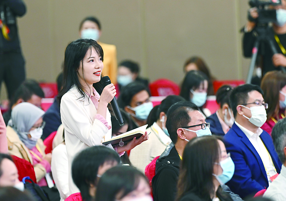 ▲10月21日,中国共产党第二十次全国代表大会新闻中心举行记者招待会。这是记者在分会场提问。 新华社记者/金良快 摄
