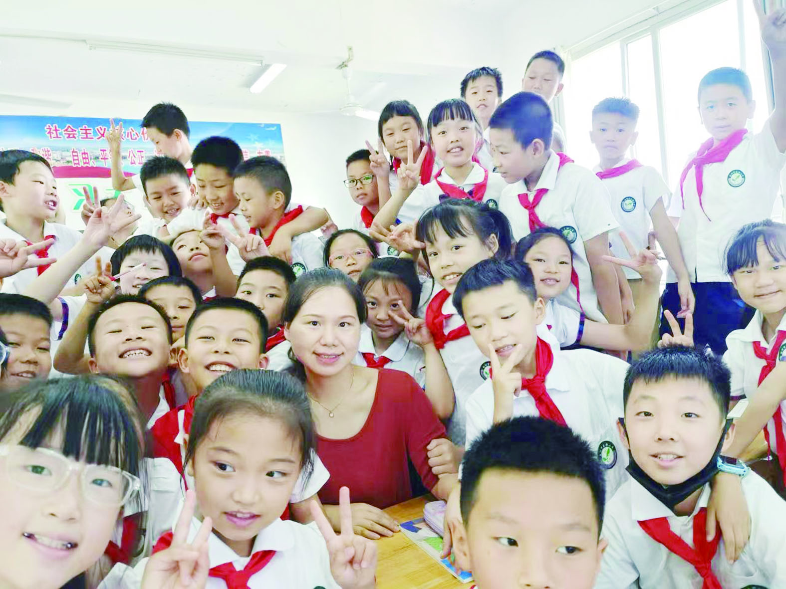 ▲文洁(二排左四)和孩子们在一起。 通讯员 供图