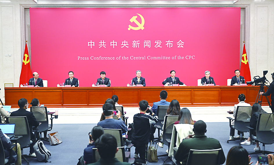 ▲10月24日上午,中共中央举行新闻发布会,介绍解读党的二十大报告。 据新华社