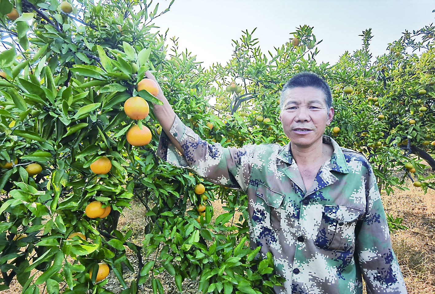 为了照看橘子,刘国云晚上睡在橘园,被蚊虫叮咬得一身包也顾不上。经过刘国云连续50个昼夜的奋战,满园的橘子终于丰收在望。