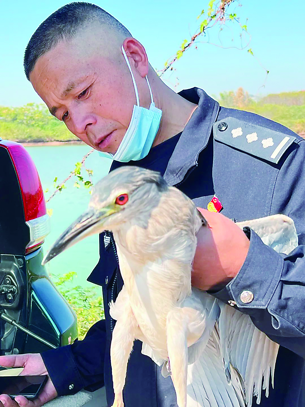 本报讯(株洲晚报融媒体记者/沈全华 通讯员/熊谅)近日,经开公安分局龙头铺派出所民警游进清巡逻至蛟龙社区枫塘水库附近时,听见有异常的鸟叫声。循着声音前行,发现草丛中有一只鸟儿被捕兽夹夹住了脚。