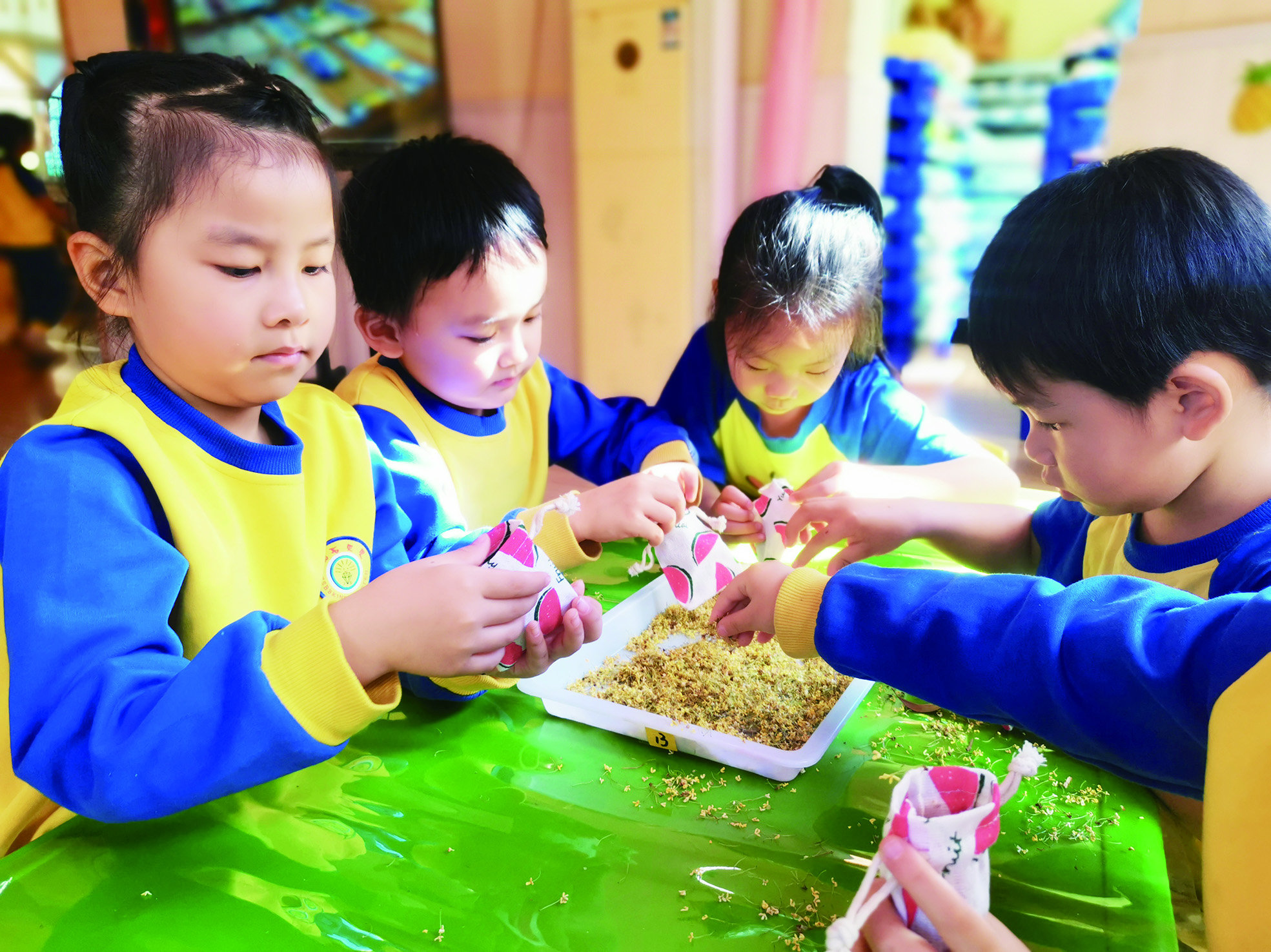 ▲孩子们动手制作桂花香包。 记者/戴凛 摄