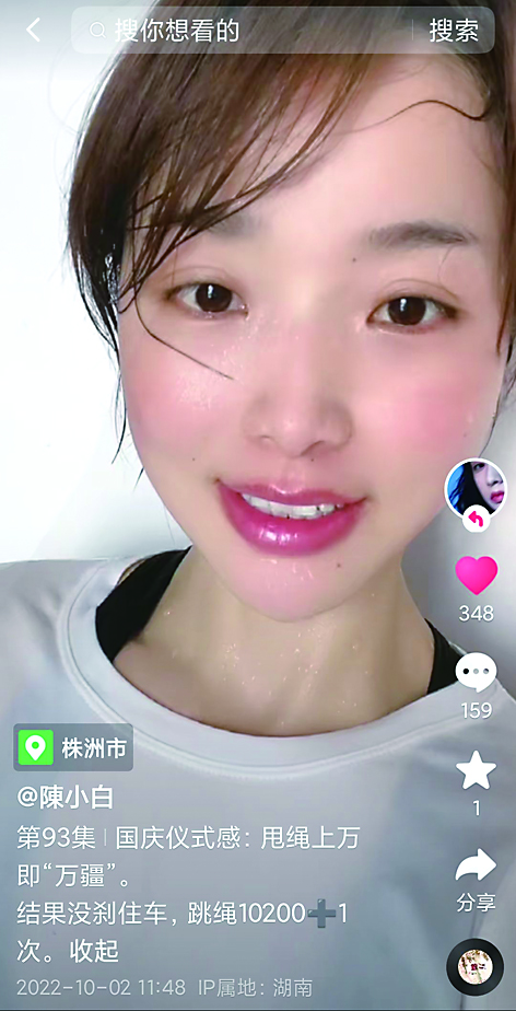 “当运动成为一种生活方式,就没有那么多理由和借口了。”在抖音上,小白经常以运动短视频打卡,展现出元气满满的生活状态,给人一种向上的力量。