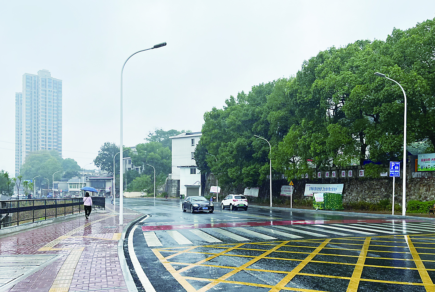 ◀改扩建后的先锋路,新路灯未投入使用。记者/刘平 摄