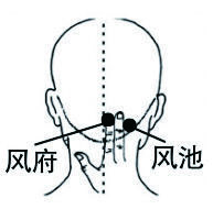 揉颈后: 按揉风府穴(后发际正中直上1寸)、风池穴(与风府相平,两条大筋外缘凹陷)各30次,每天按压3次。