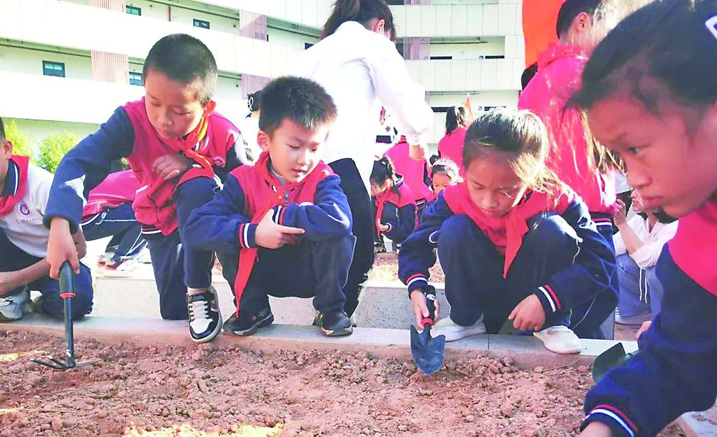 本报讯 (株洲晚报融媒体通讯员/王倩)在节气物候中,感受大自然的馈赠;在如梭的光阴里,用劳动写成最美的诗行。近日,市二中青龙湾小学秋季农耕活动在该校“24节气菜园”拉开帷幕,少先队员们兴致勃勃在校园种下各种蔬菜。