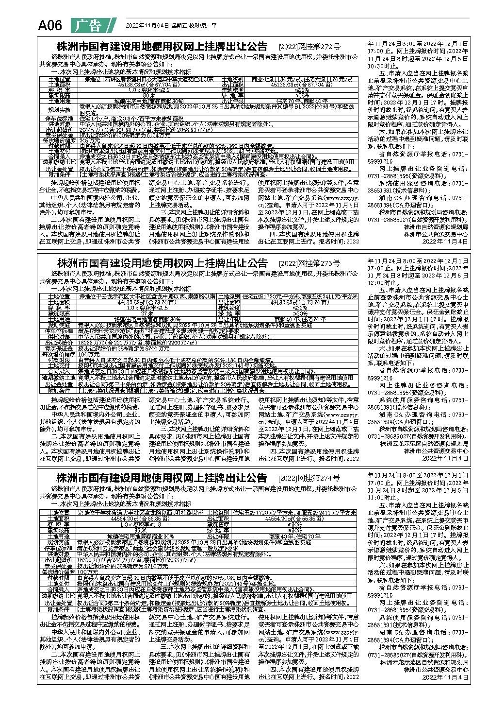 株洲市国有建设用地使用权网上挂牌出让公告 [2022]网挂第273号