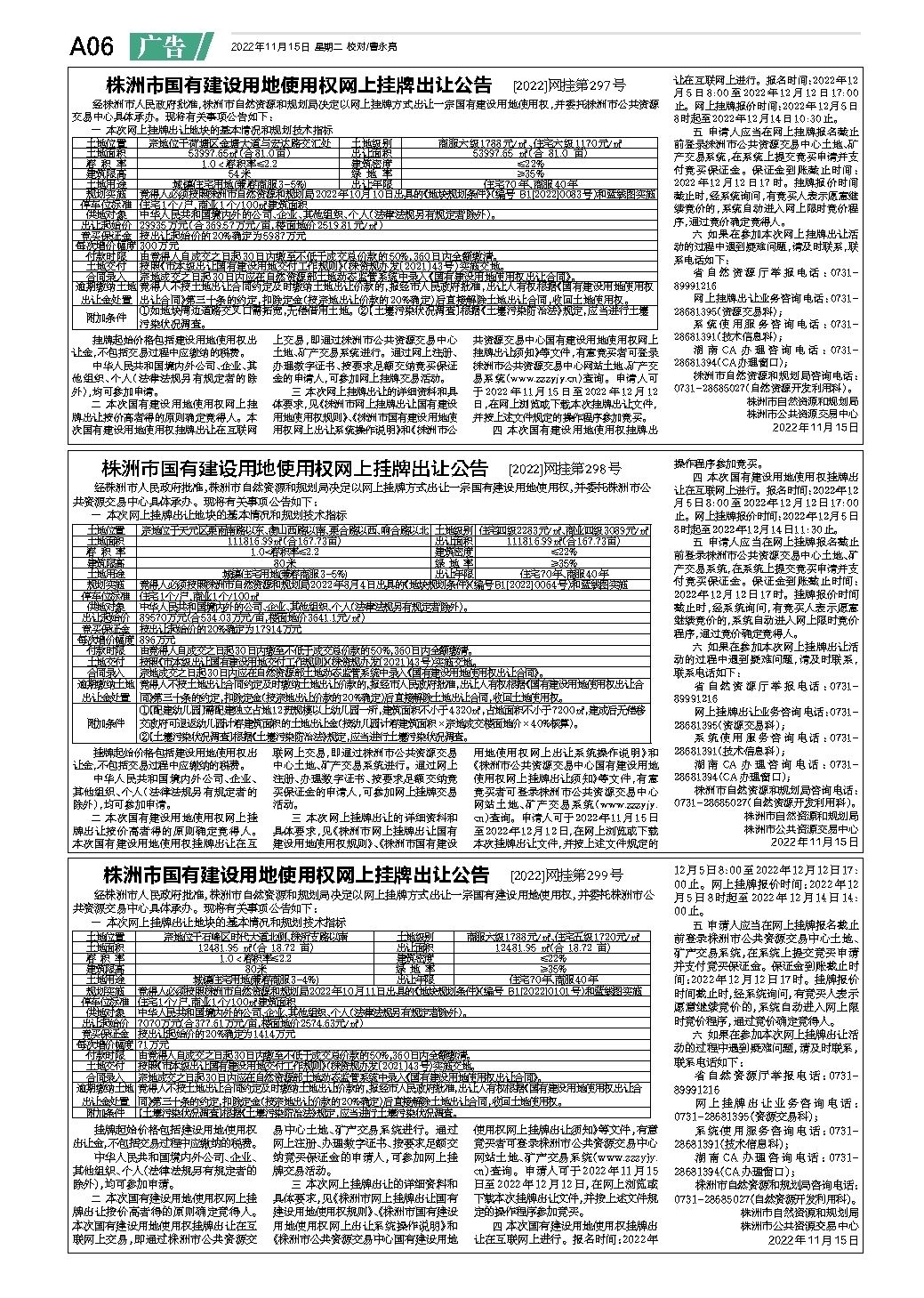 株洲市国有建设用地使用权网上挂牌出让公告 [2022]网挂第298号