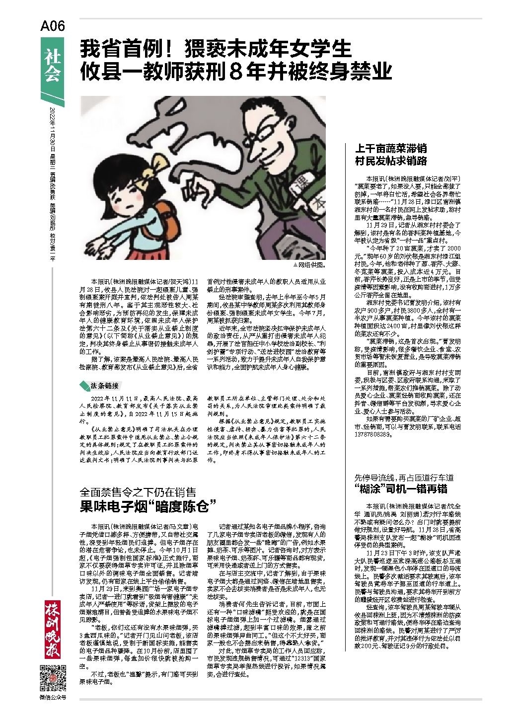 我省首例!猥亵未成年女学生 攸县一教师获刑8年并被终身禁业