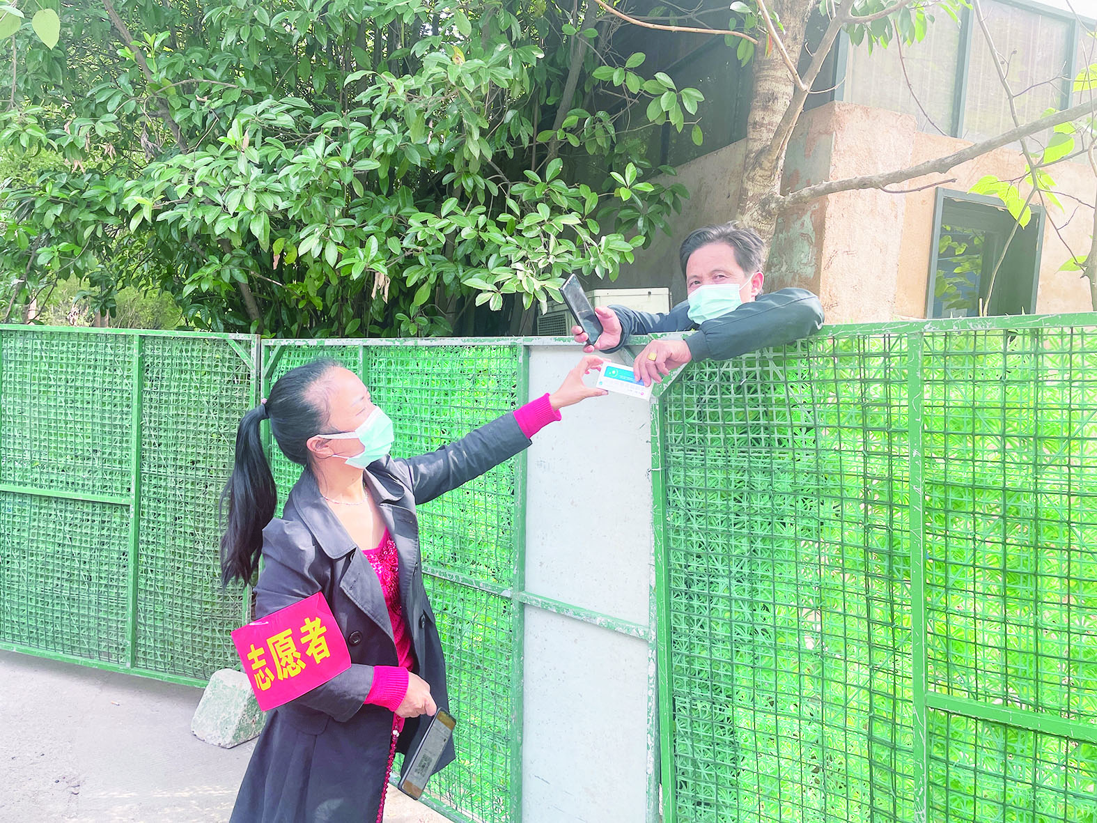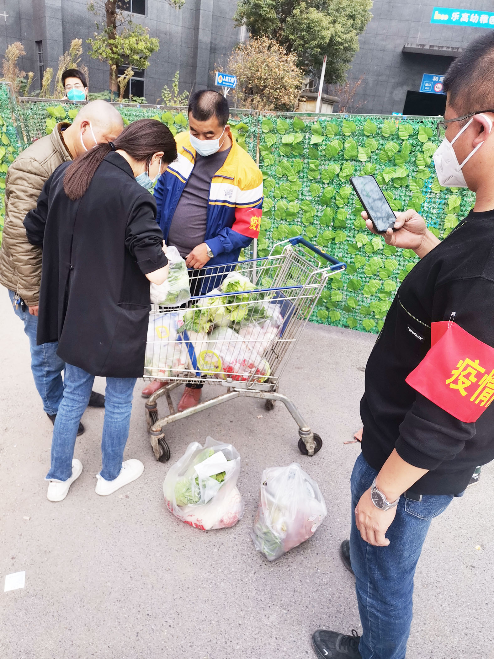身穿红马甲的志愿者们在小区门口来回穿梭,“志愿红”与“林荫绿”构成了一幅抗“疫”画卷。这些志愿者,有来自街道(社区)的志愿者,也有来自小区党支部的党员志愿者,还有主动请缨来帮忙的热心业主志愿者。他们分工明确,有的负责接收各方送来的快递外卖,有的负责宣传劝导居民不串门、不聚集,有的负责按楼栋分拣物品,有的负责运送物资。