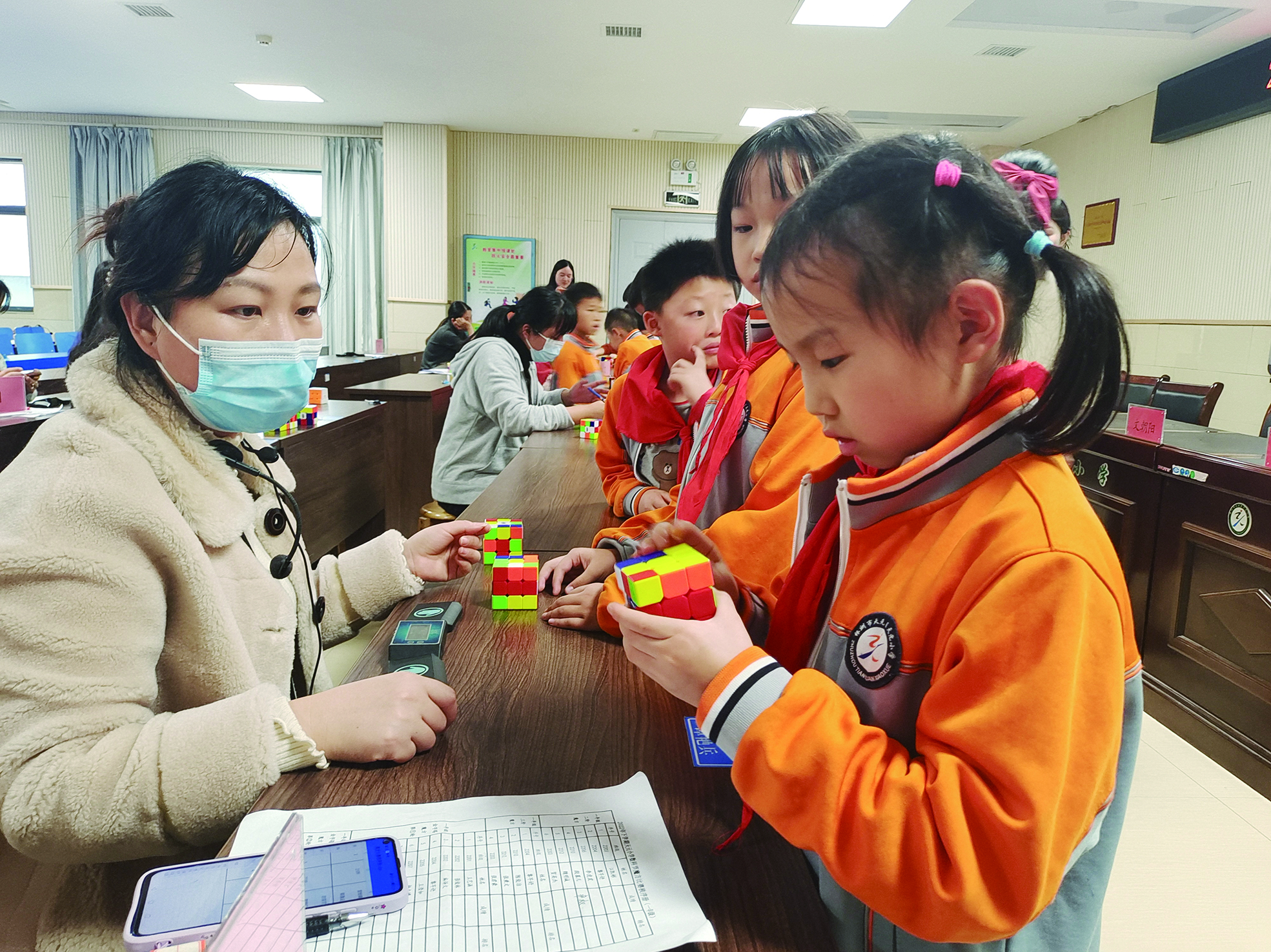 ▲魔方大赛激发学生学习数学兴趣。通讯员/张水艳 摄