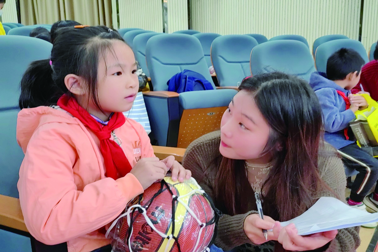 ▲蹲下来,倾听孩子们的声音。 通讯员/黄文娟 摄