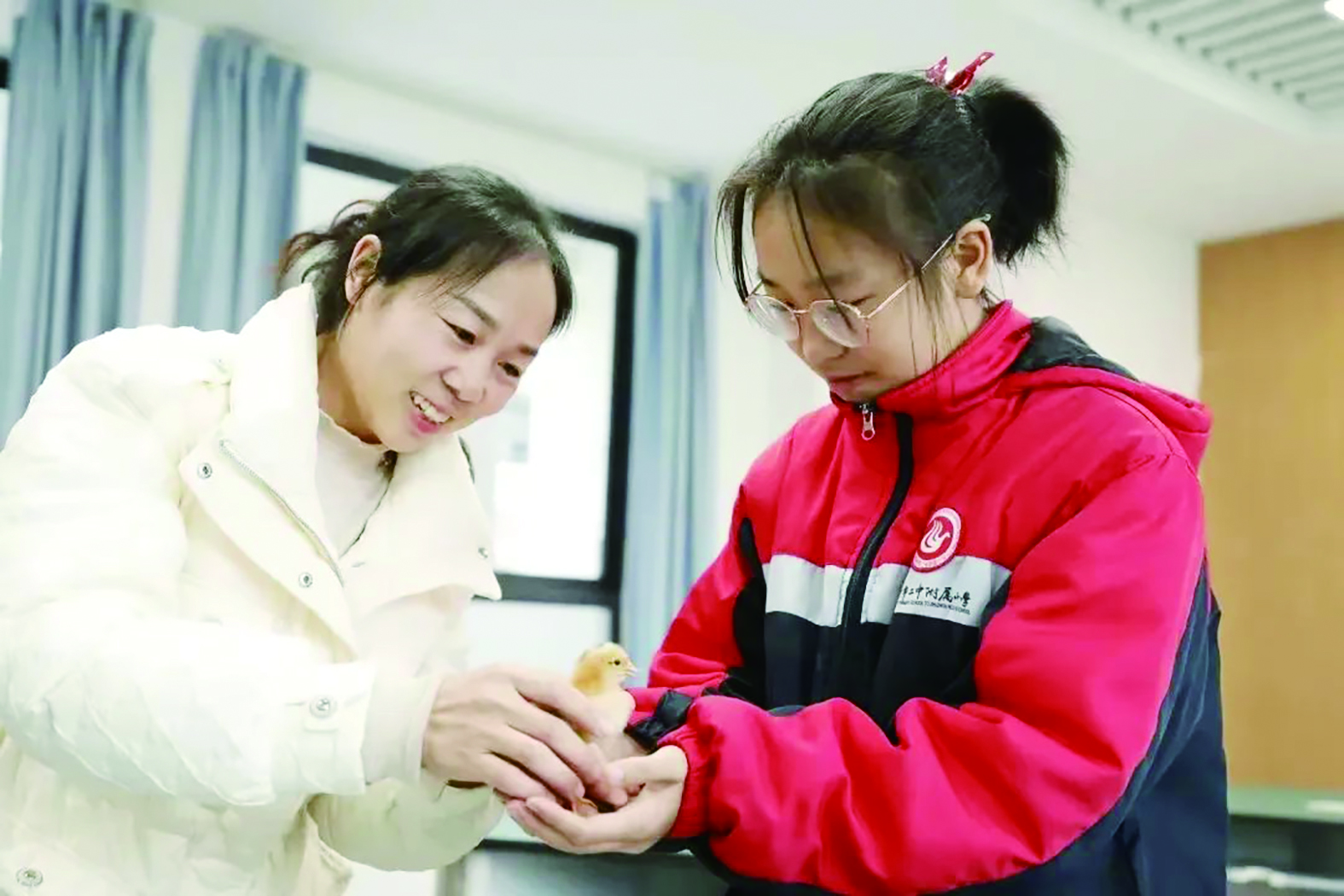 ▲学生从孵化小鸡过程感受生命的珍贵。通讯员/苏慧娟 摄