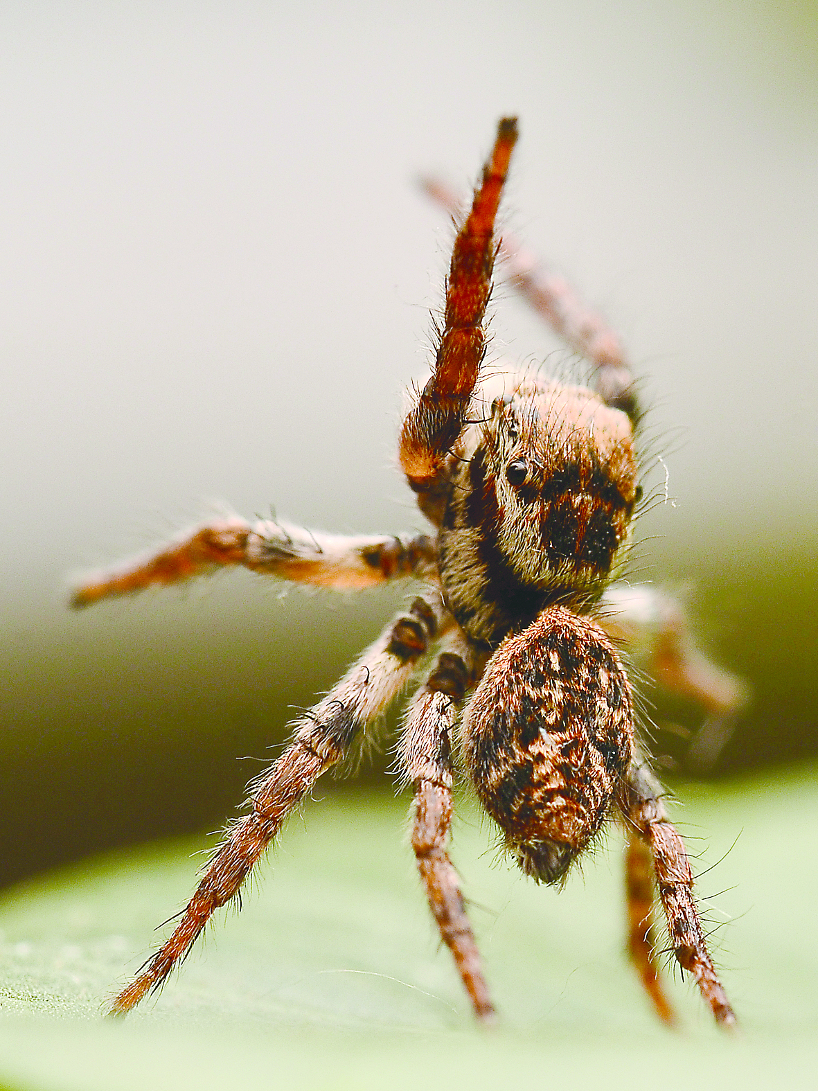 照片上的跳蛛只有一粒黄豆大,它高昂着头,举起四肢,是想直立行走吗?不是的,其实它在跳舞求偶。雄性跳蛛为了繁衍后代,往往会通过雌性跳蛛留下的丝线进行追踪。虽然雄性跳蛛一片痴情,千里迢迢赶来,但雌性跳蛛却很挑剔,不会立马看上对方,需要雄性跳蛛现场“尬舞”,跳到心满意足为止。