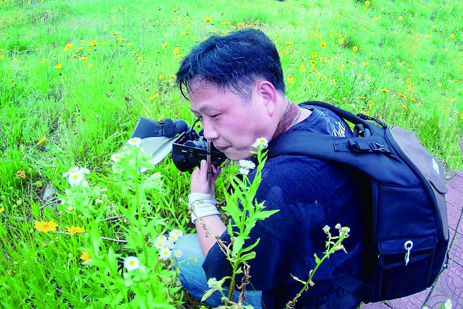 穿着休闲的冲锋衣、牛仔裤、登山鞋,肤色黝黑健康,51岁的龙健看上去还像个30来岁的年轻小伙。“玩微距摄影,亲近大自然,使我感觉身心愉快。”龙健爽朗地笑道。尼康D7000相机、腾龙60镜头、狂人微距灯,这些就是他全部的微距摄影“家当”。