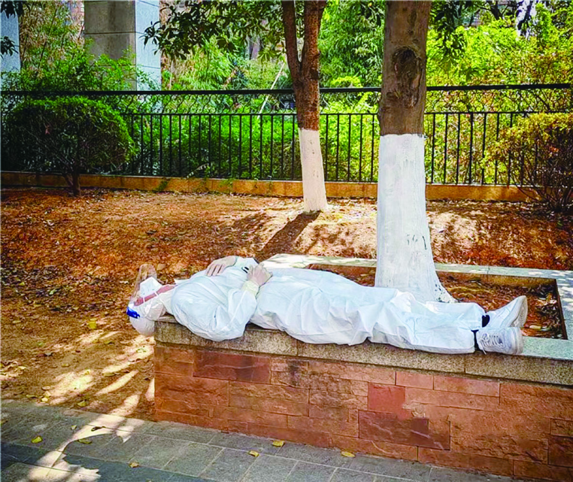 “‘大白’睡着的样子让我们很心疼。”这两日,一名抗疫志愿者躺着小憩的图片在青龙湾社区流传,收获众多感动。这名志愿者叫齐恒,是渌口区自然资源局的工作人员,连续数日在一线奋战。11月6日,核酸检测工作结束后,他直接躺在路边花坛上睡着了。