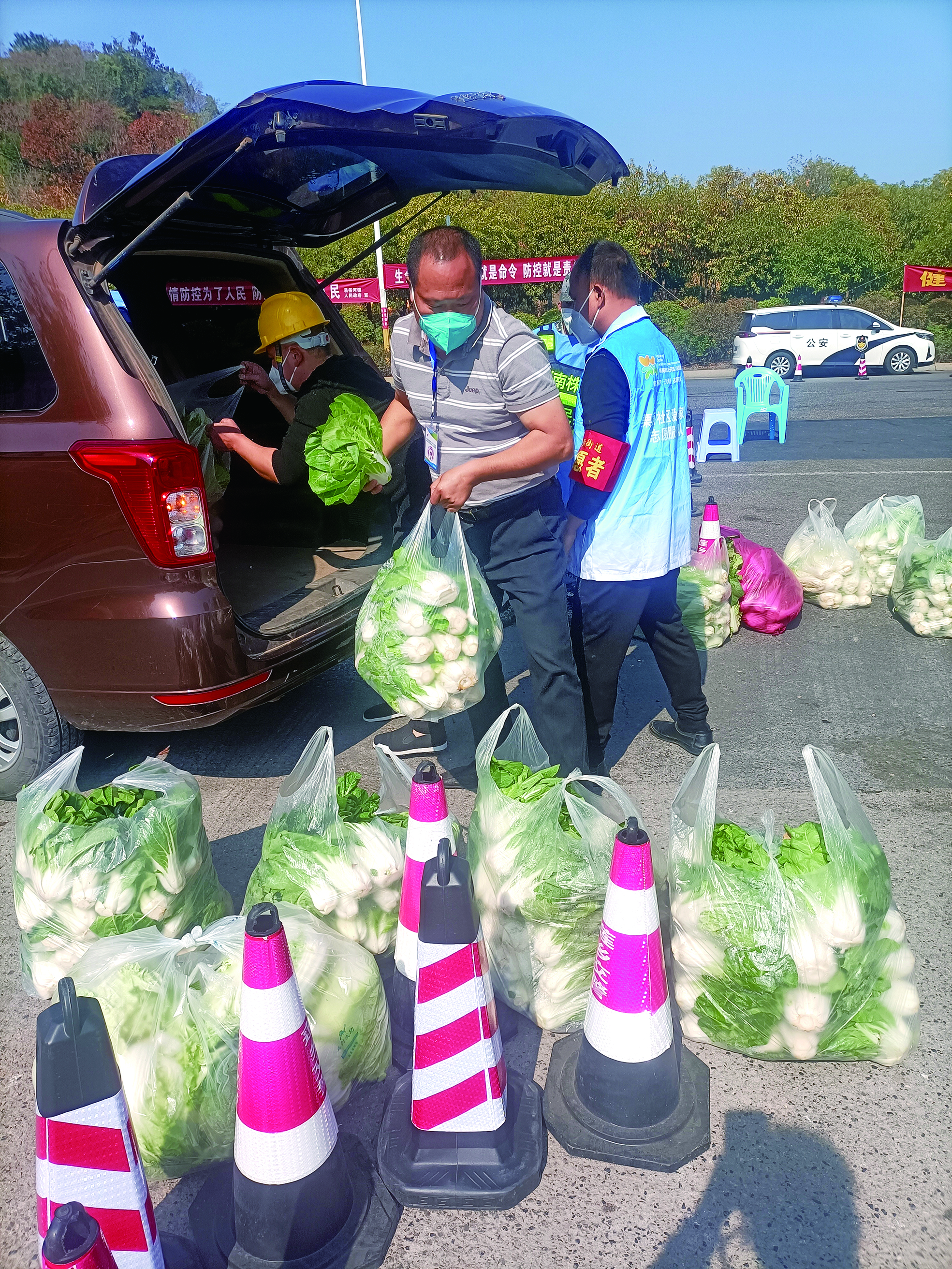 11月7日中午12时许,湘潭爱心人士甘稳军带领一支由12人组成的爱心团队,为栗雨街道栗雨社区捐赠了芽白等2吨多蔬菜,他们将蔬菜送至位于株洲大道两市交界处后随即离开,社区则安排车辆将蔬菜运回。