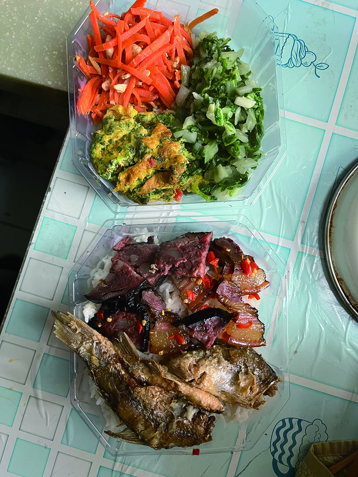 ▲邻居送的饭菜。受访者供图