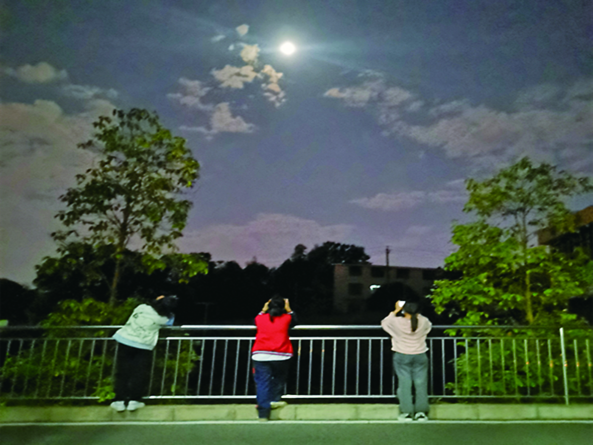本报讯(株洲晚报融媒体记者/戴凛)11月8日晚,株洲市特殊教育学校的寄宿学生经历了特别的一夜。同学们在学校的组织下,参加了一次观月食活动。同学们感叹,尽管疫情让城市安静下来,但是校园内的生活一样充实有趣。