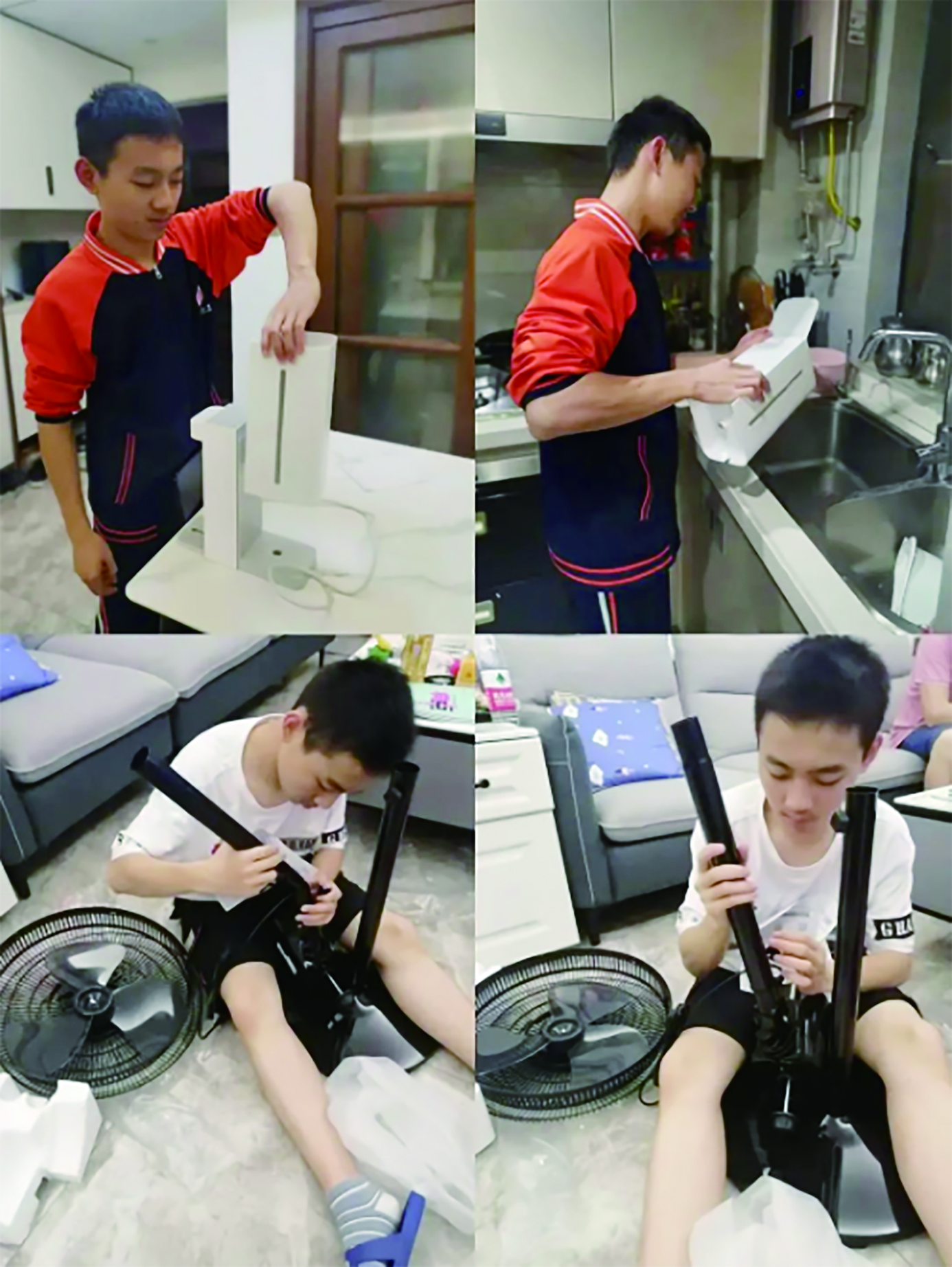 ▲学生清洗、重新组装电器。通讯员供图