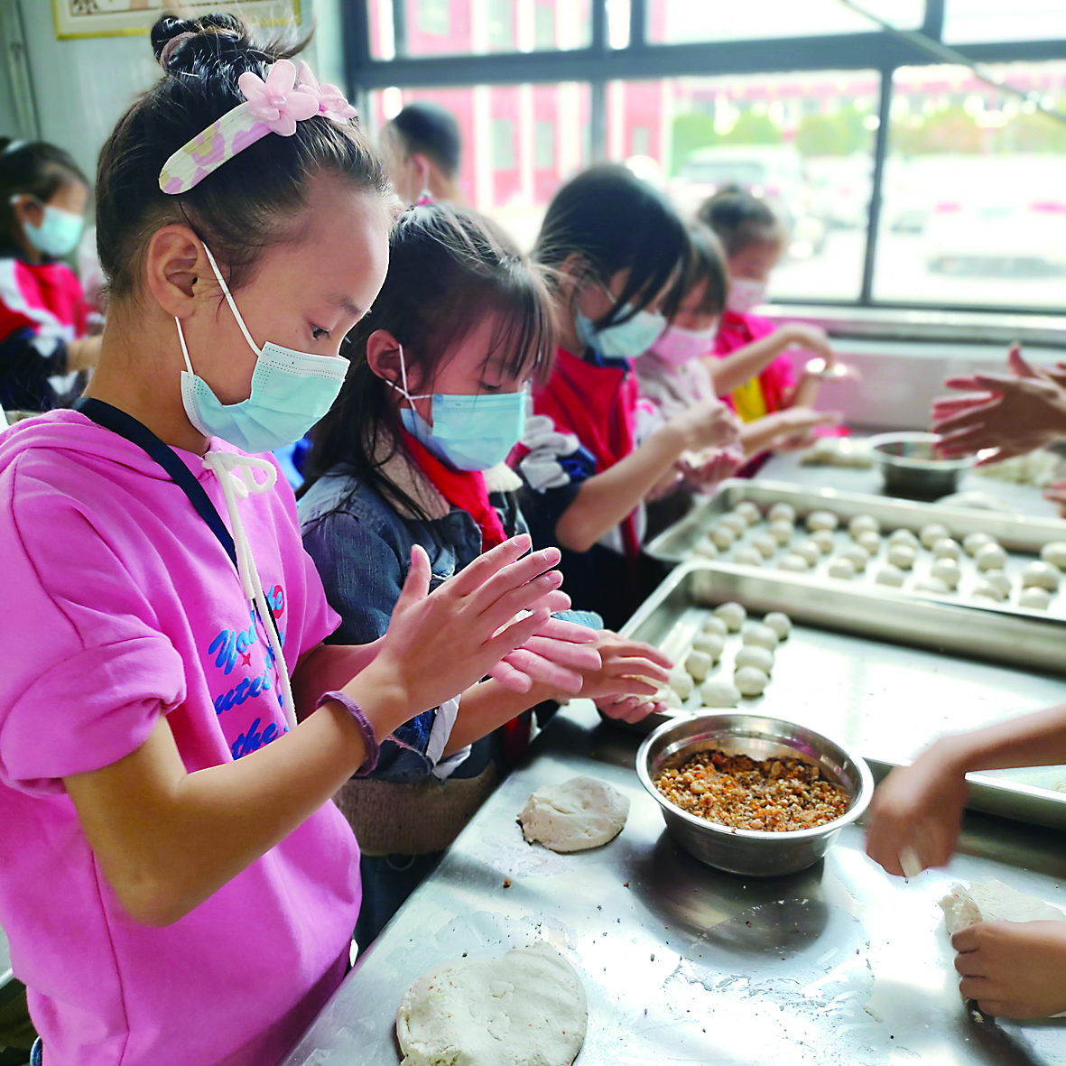 ◀制作桂花丸子。校方供图