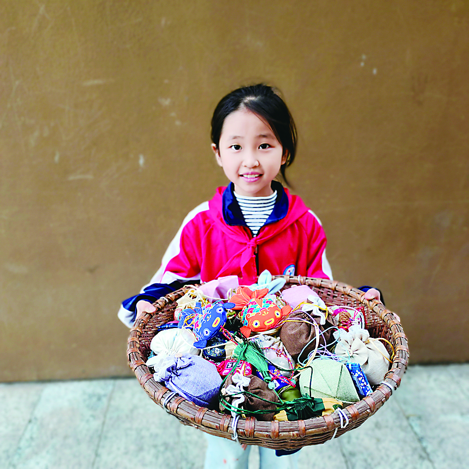 ◀展示制作好的桂花香袋。校方供图