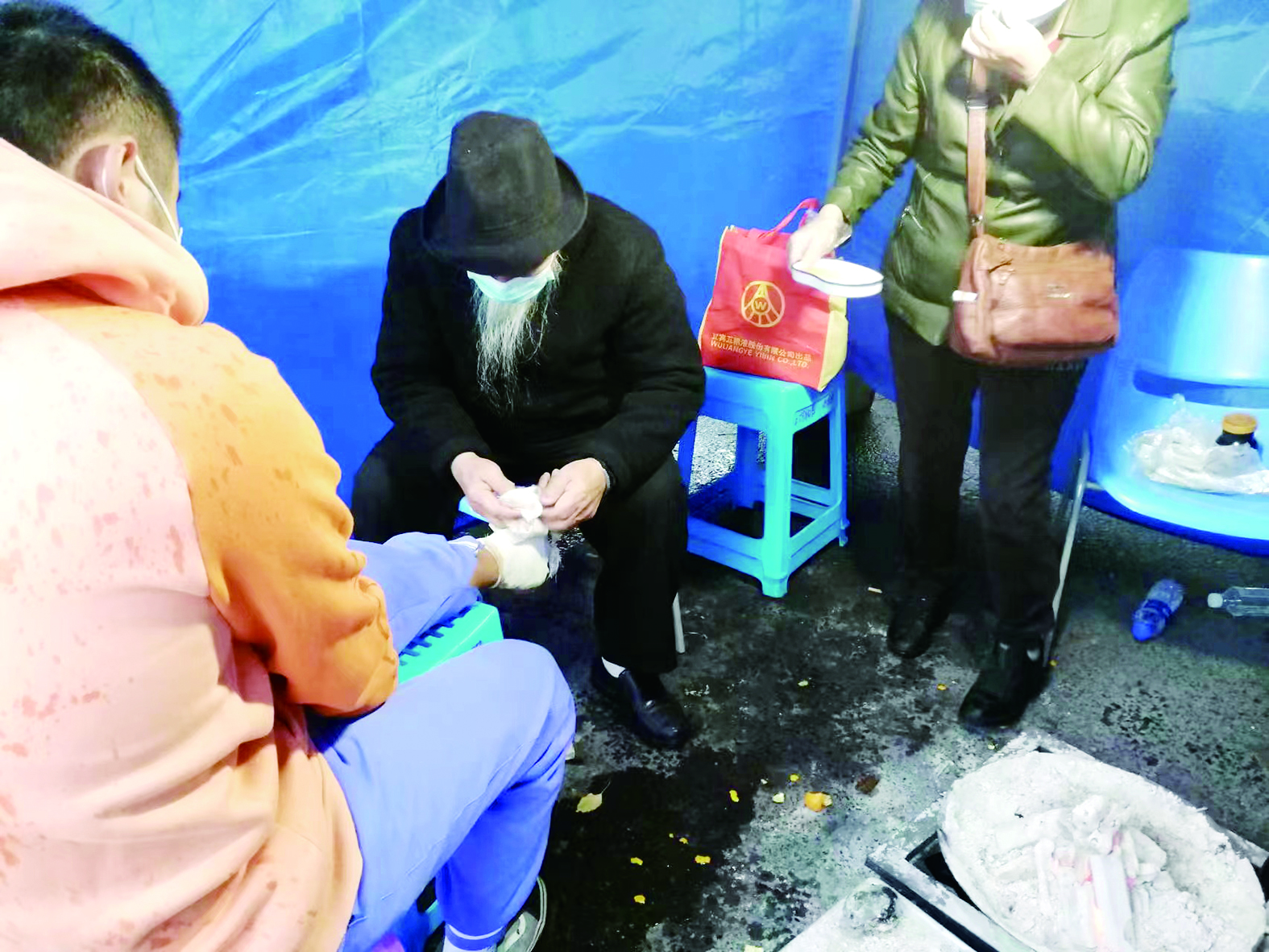 本报讯(株洲晚报融媒体记者/李逸峰 通讯员/贺鸿荟 匡春梅)11月16日下午3时许,在石峰区与荷塘区交界处的红旗桥头路卡处,一名家住荷塘区的老中医正在为石峰区学林街道三冲社区居民小霍第二次治疗脚伤。